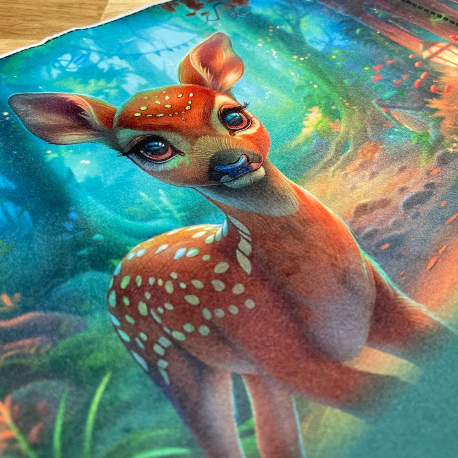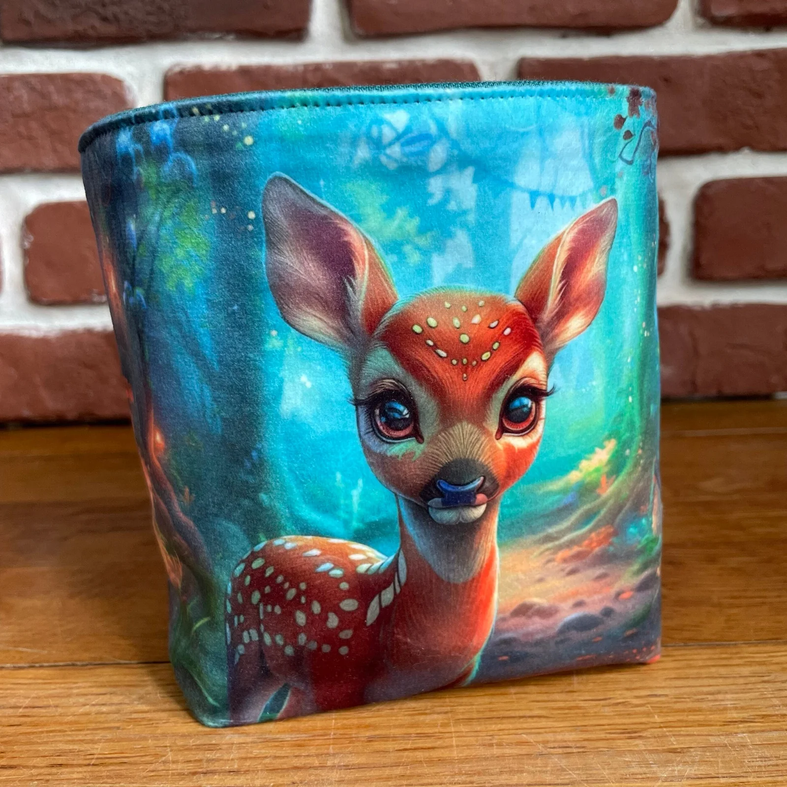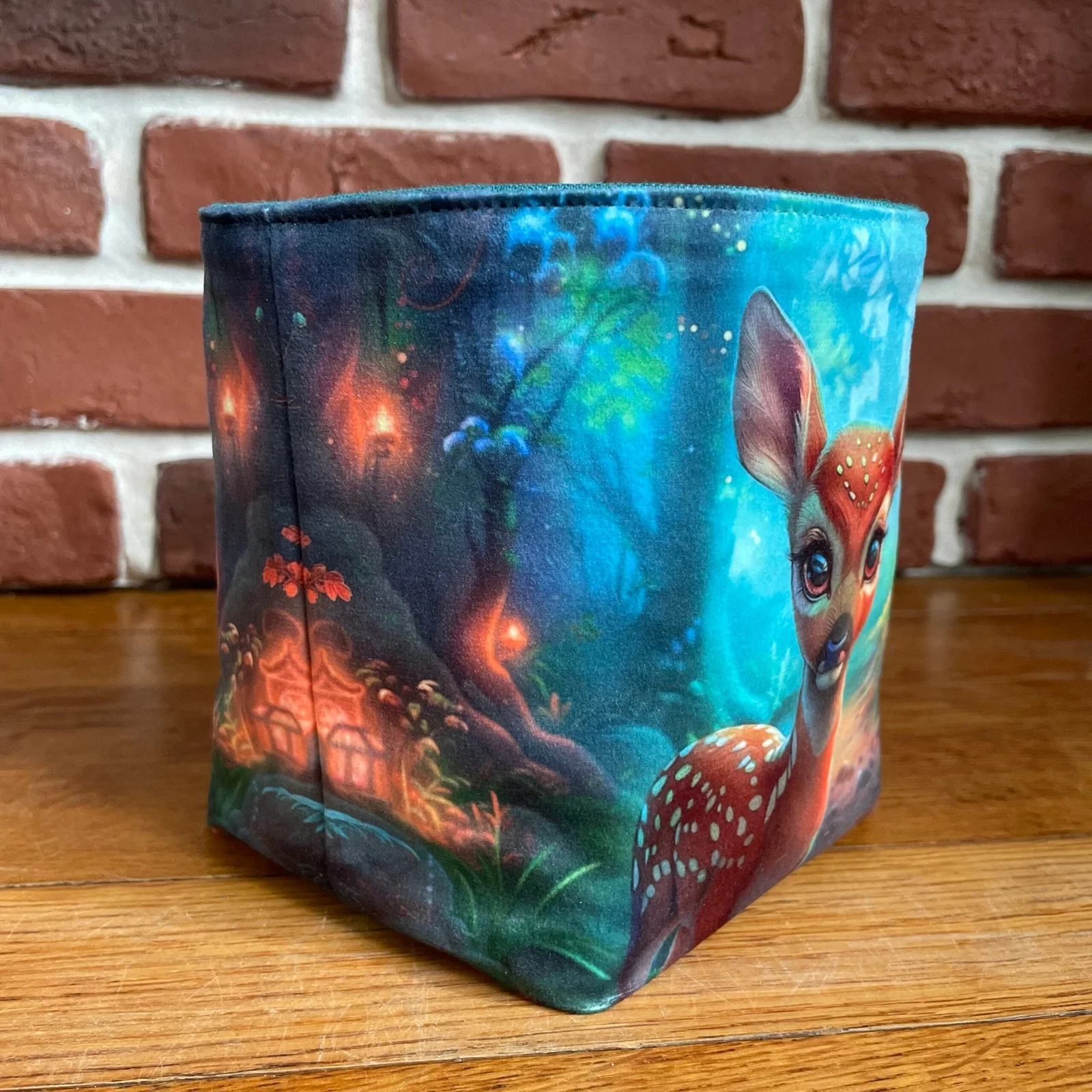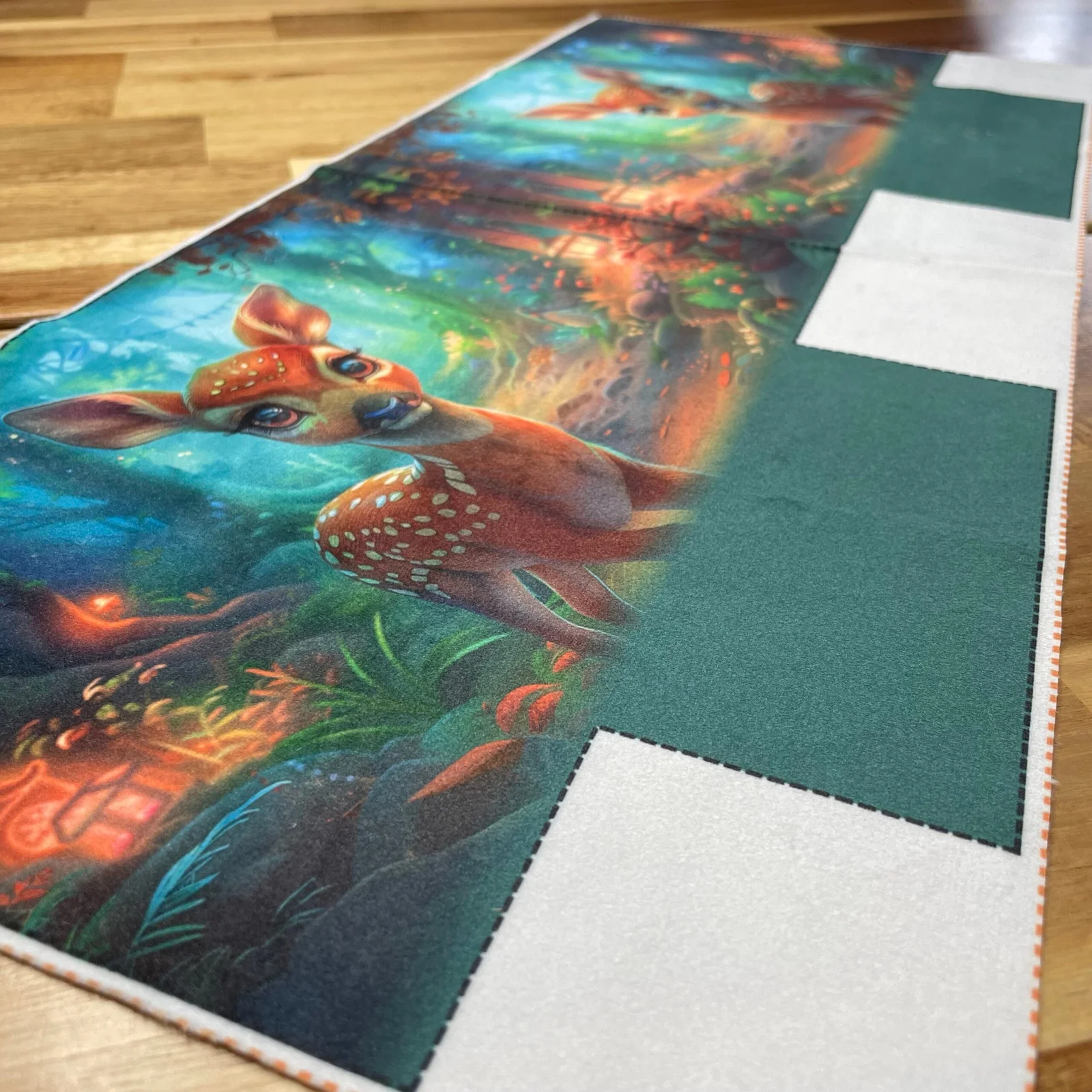 En velours avec un imprimé d’animaux de la forêt, ce panneau est très doux et agréable au toucher.