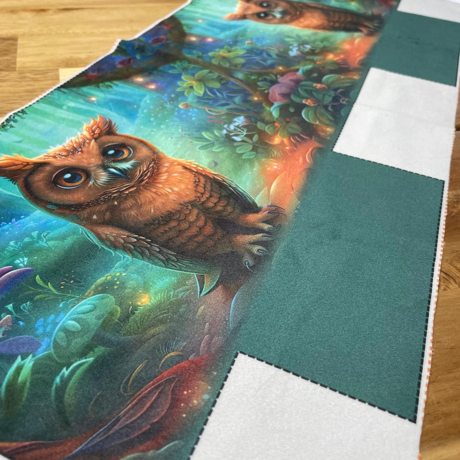 En velours avec un imprimé d’animaux de la forêt, ce panneau est très doux et agréable au toucher.
