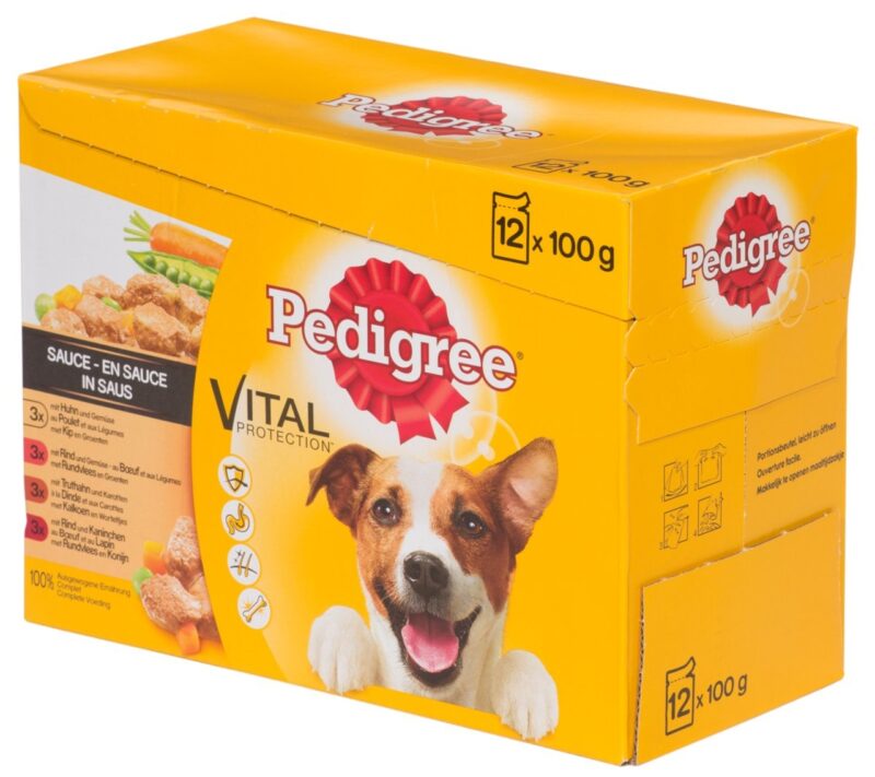 Pedigree Selection en Boite de 12 Sachets de 100 gr 3x au Poulet et aux Légumes 3x au Bœuf et aux Légumes 3x à la Dinde et aux Carottes 3x au Bœuf et au Lapin