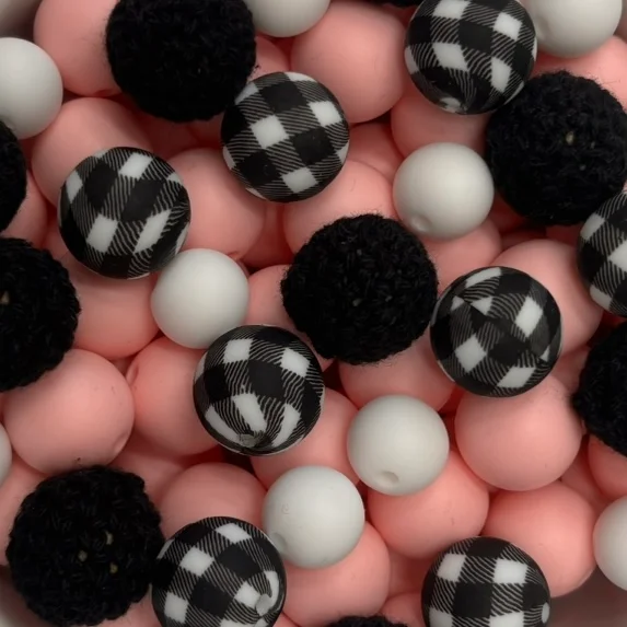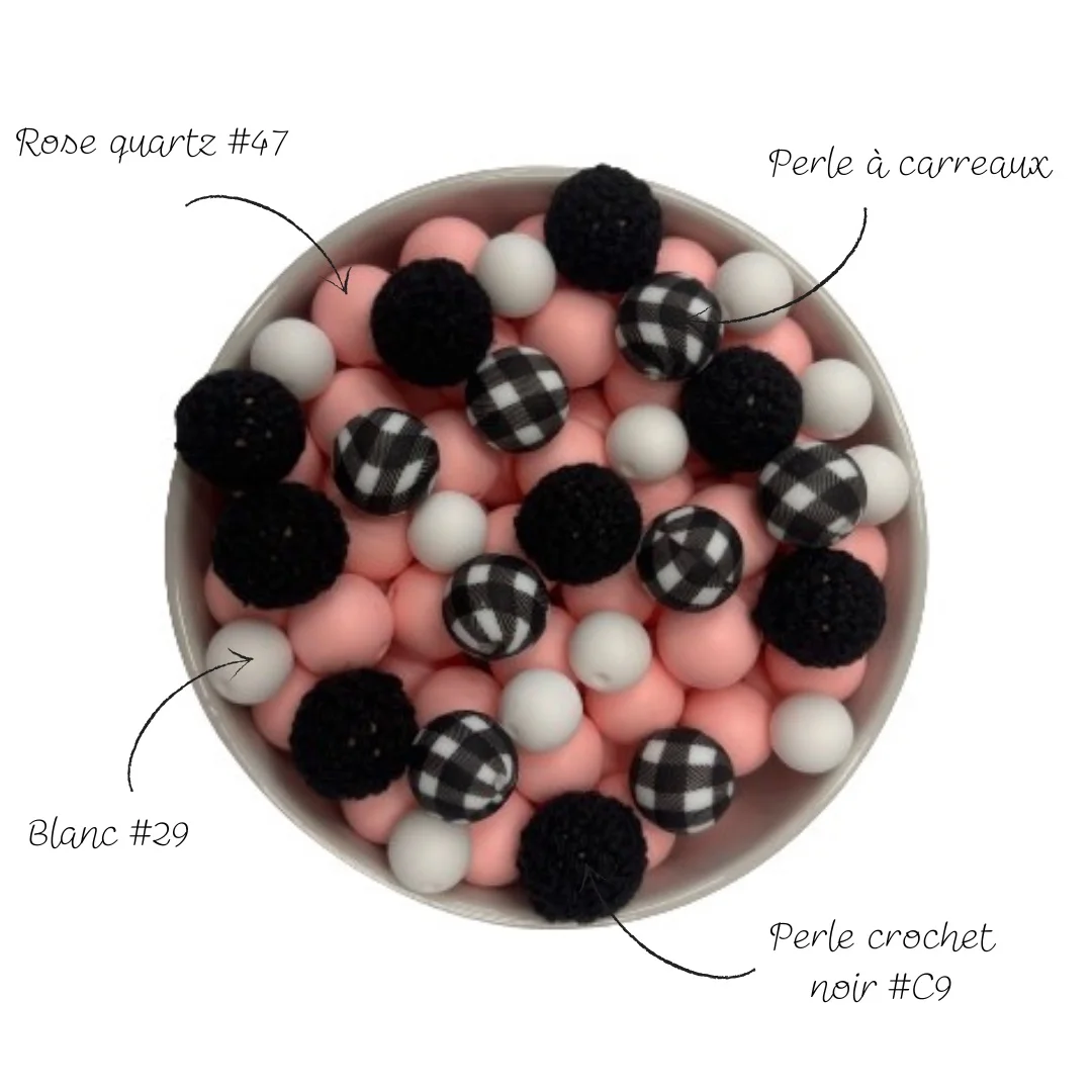 Perle à carreaux noir 15mm Toutes les couleurs des perles en silicone ont été testées chimiquement dans un laboratoire français et sont sans aucune substance nocive.