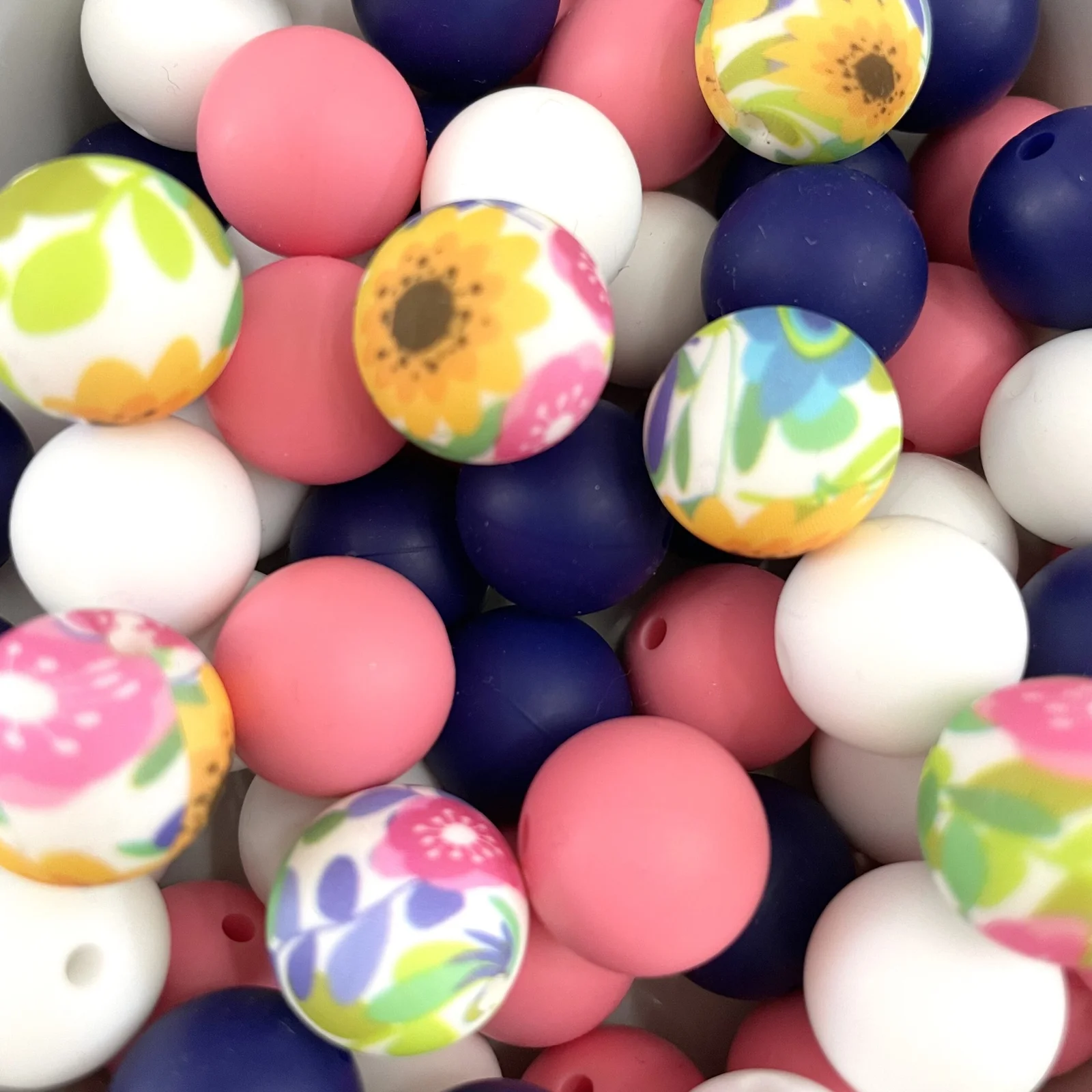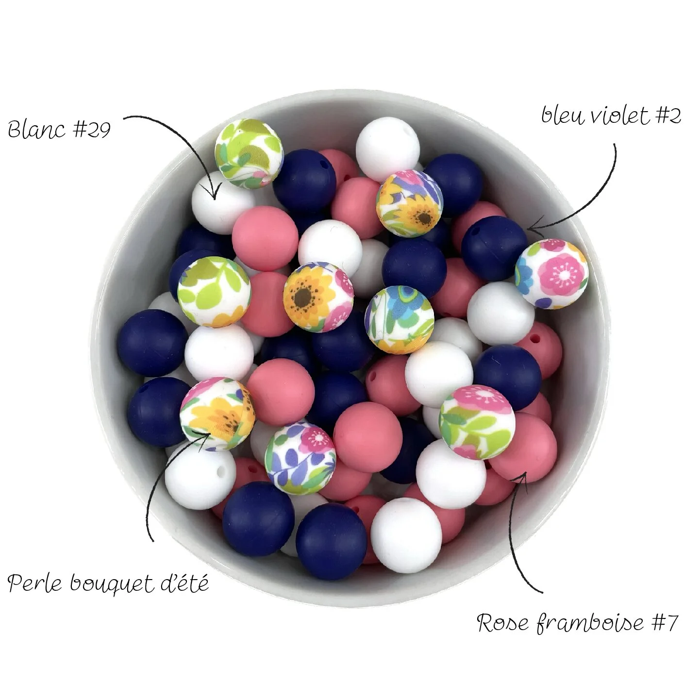 Perle bouquet d’été 15 mm Toutes les couleurs des perles en silicone ont été testées chimiquement dans un laboratoire français et sont sans aucune substance nocive.