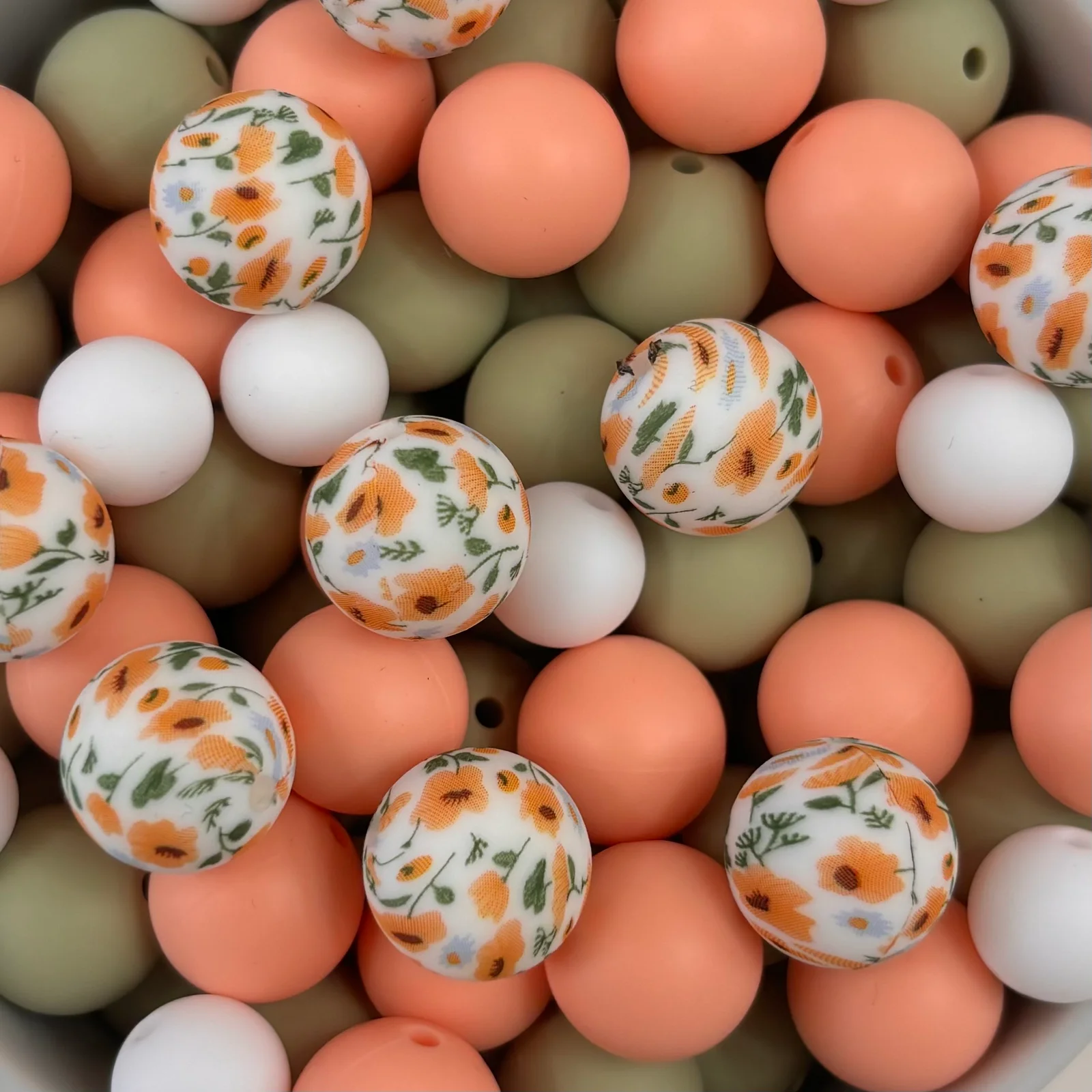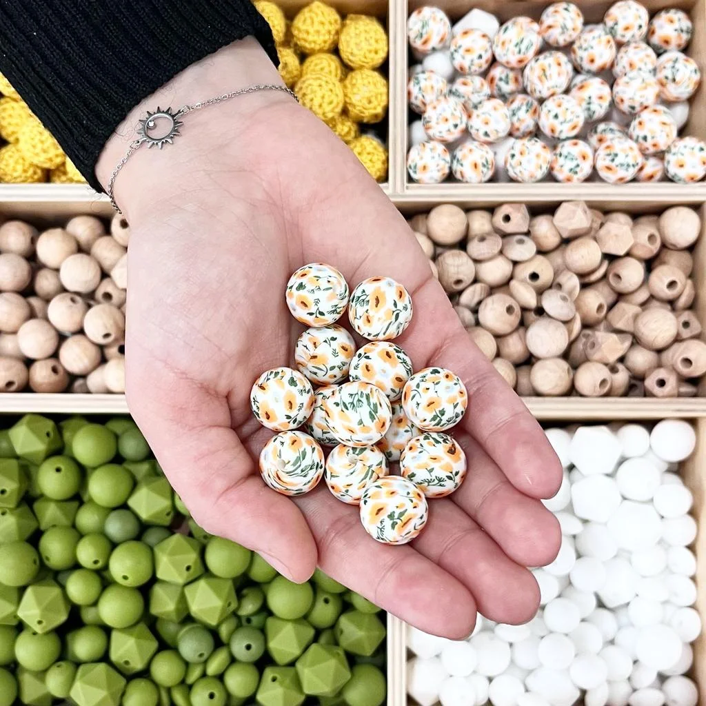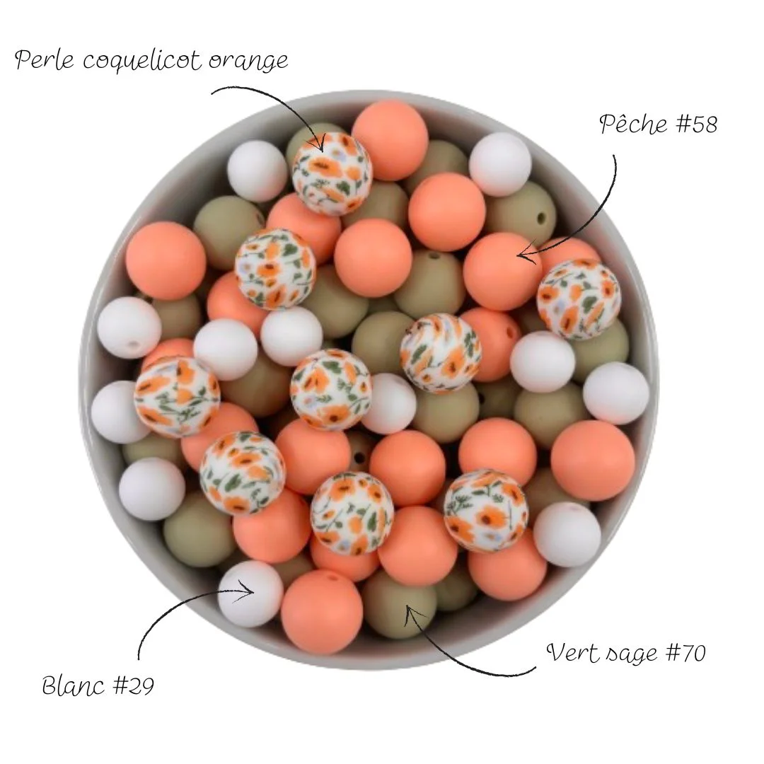 Perle coquelicot orange 15 mm Toutes les couleurs des perles en silicone ont été testées chimiquement dans un laboratoire français et sont sans aucune substance nocive.