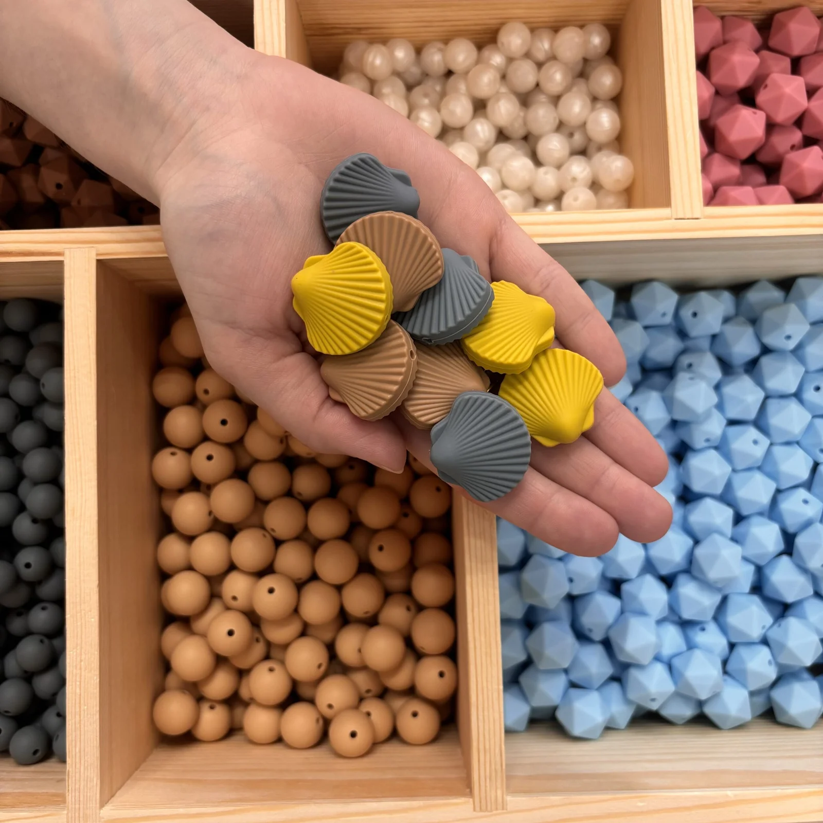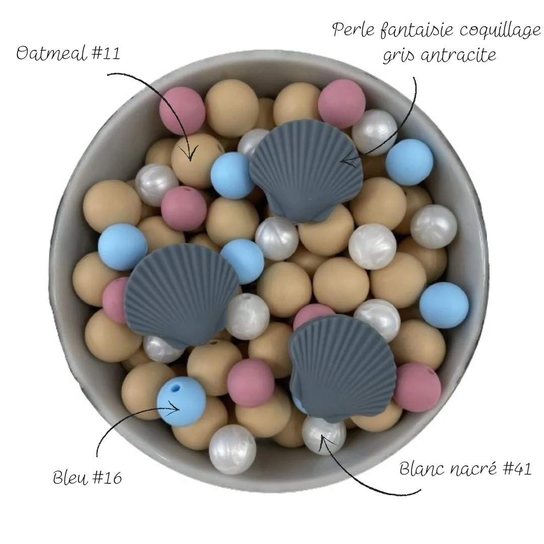 Perle coquillage 18/25mm Toutes les couleurs des perles en silicone ont été testées chimiquement dans un laboratoire français et sont sans aucune substance nocive.