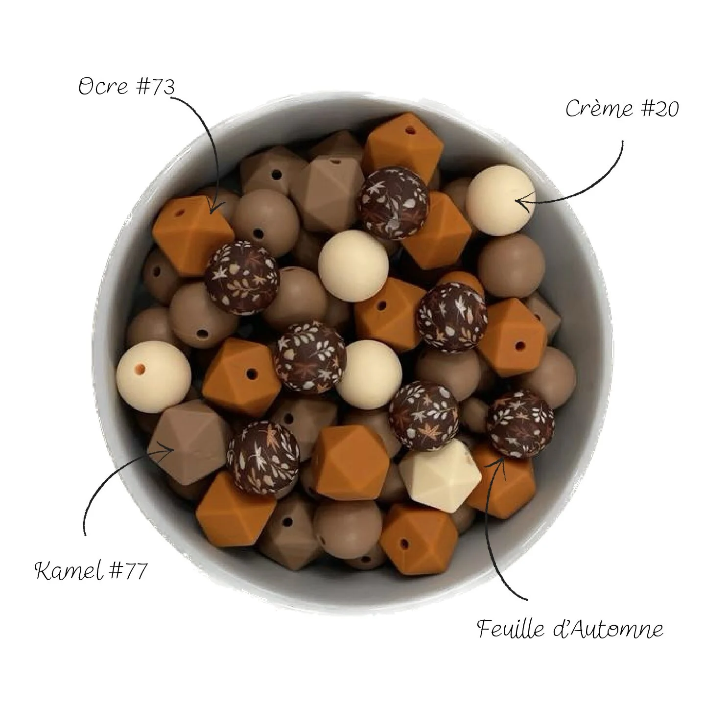 Perle feuille d’automne 15 mm Toutes les couleurs des perles en silicone ont été testées chimiquement dans un laboratoire français et sont sans aucune substance nocive.