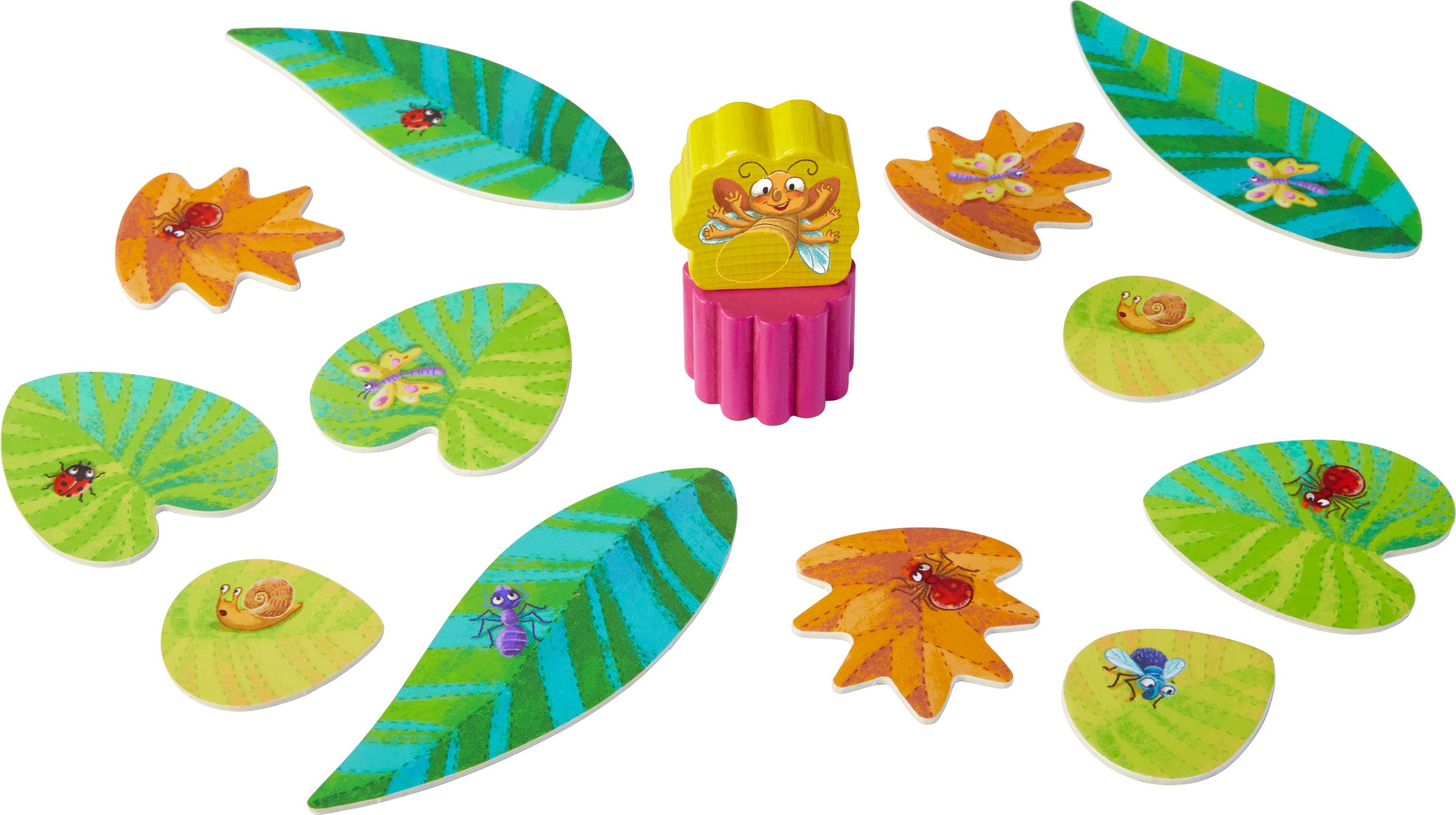 1 ver luisant Victor, 1 chenille Myrtille, 1 dé, 1 fleur, 12 feuilles, 1 règle du jeu.