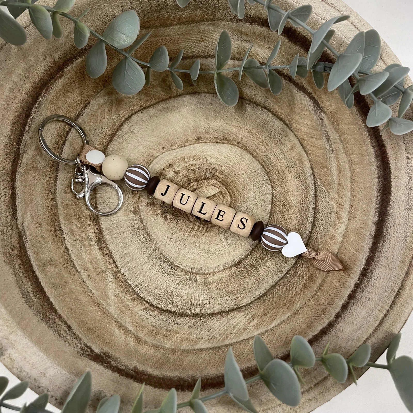 Porte-clés personnalisé 1 prénom. Plus de choix de personnalisation dans les photos d’attache-tétine, les perles utilisées sont les mêmes. Consulter “bbpastel_com” sur Instagram pour suivre toute l’actualité de BBpastel sous forme de Story publiées en temps réel.