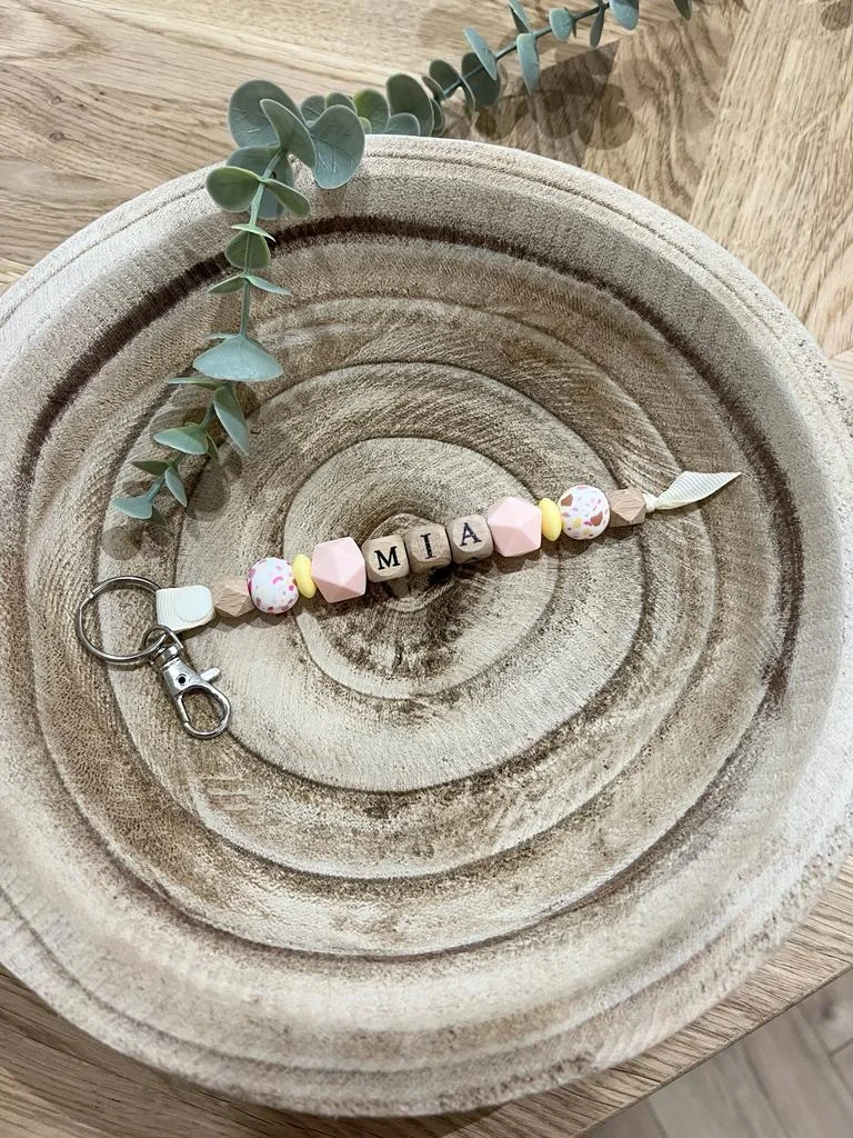 Fiche technique: Composition: Boutons Pressions En Plastique Perles En Bois Brut Non Traité Perles En Silicone Alimentaire Ruban Polyester
