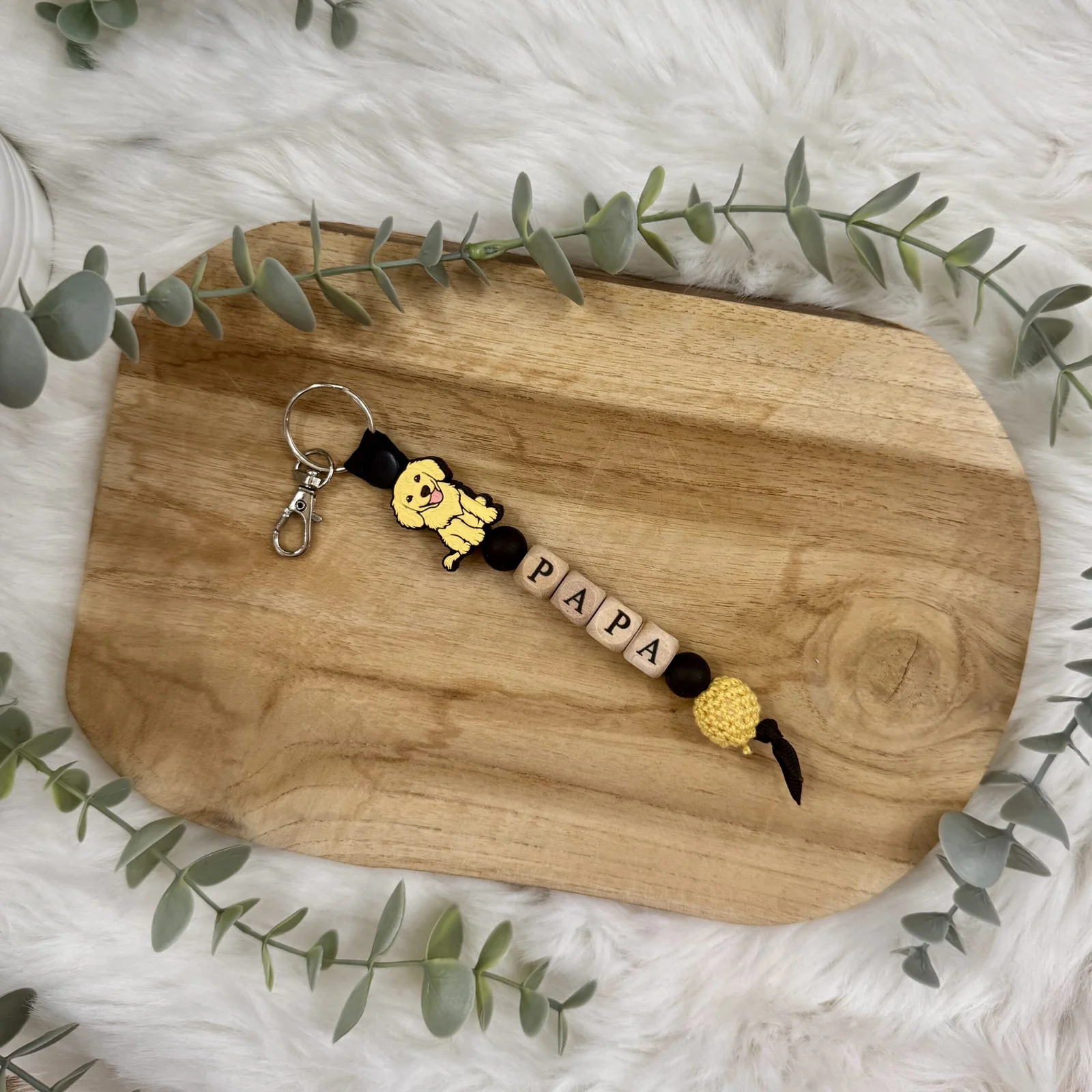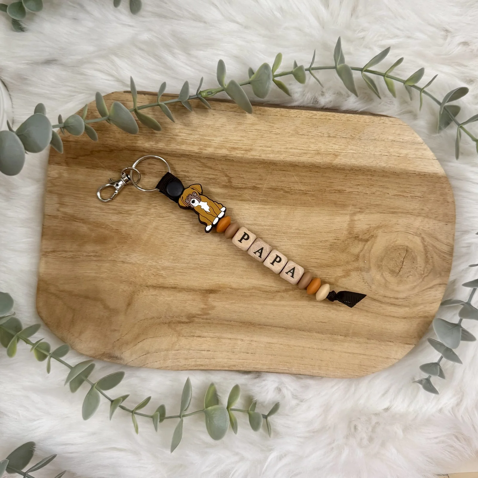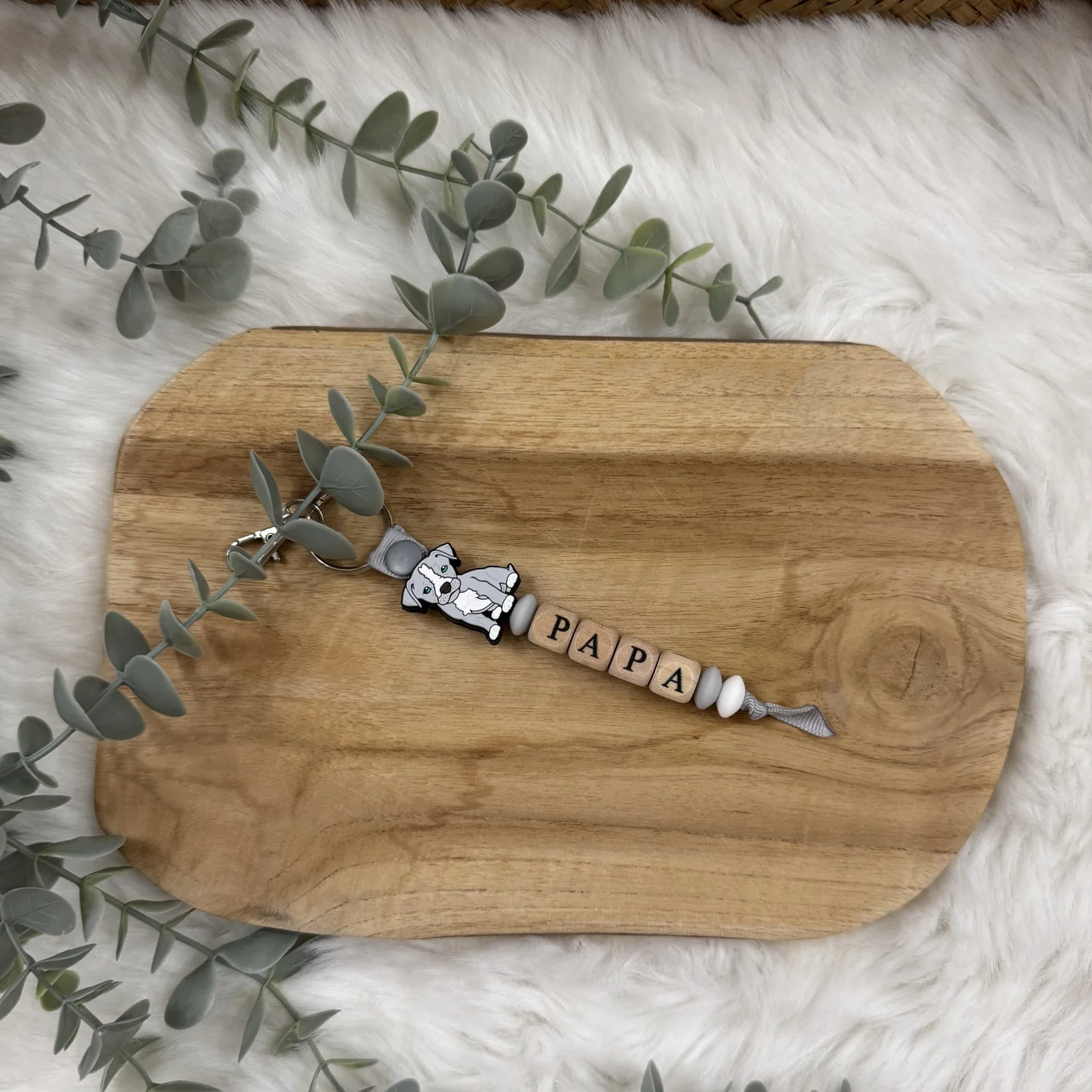 Offrez un cadeau original et plein d’émotion avec notre porte-clés “Papa chien” personnalisables. Choisissez parmi plusieurs races pour faire apparaître le compagnon à quatre pattes préféré de la famille. Chaque porte-clés rend hommage au lien unique entre un papa et son chien.