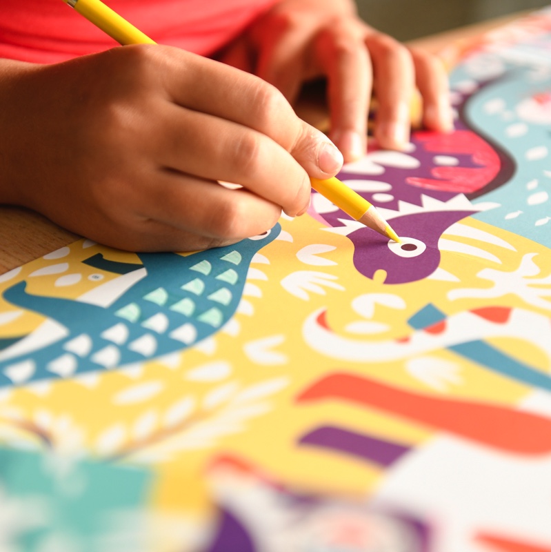 Fabrication France Taille de la pochette : 22 x 31 cm Taille du coloriage dinosaures : 97 x 30 cm Un packaging plat pour réduire l’empreinte carbone Illustrations : Nadia Taylor Tous publics dès 4 ans Un poster pré-colorié pour un résultat bluffant ! Ce coloriage dinosaures n’est pas en noir et blanc, mais en couleurs ! L’enfant complète une magnifique œuvre d’art. Grâce aux zones déjà colorées, l’enfant vient facilement à bout de ce grand coloriage, et obtient un résultat vraiment harmonieux.