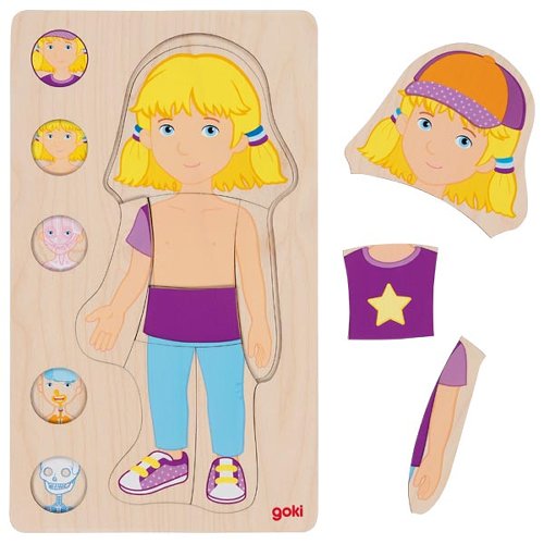 Le puzzle à couches est composée de cinq puzzles à résoudre successivement l’une sur l’autre. Ainsi, l’enfant va découvrir : le squelette, la circulation sanguine, les organes et les muscles avec des motifs colorés. Tous les détails sont joliment dessinés et lorsque les dernières pièces du puzzle sont posées, une adorable petite fille apparaît.