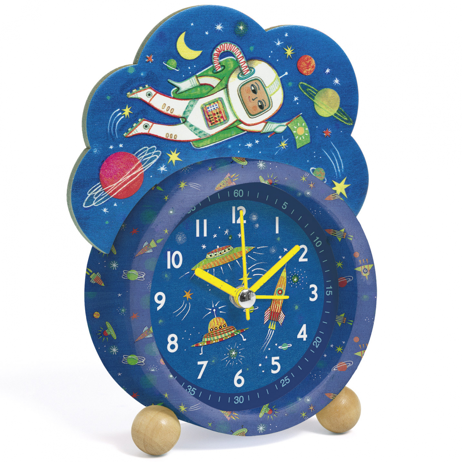 Le réveil espace aide les enfants à se réveiller dans la bonne humeur. C’est également un bon moyen d’accompagner les petits dans l’apprentissage de l’heure.