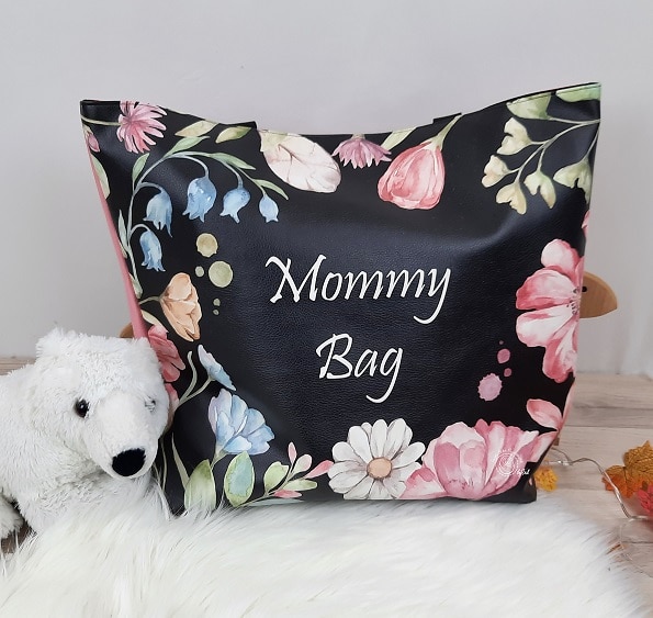 Sac Mommy bag Fleurs roses Fond Noir