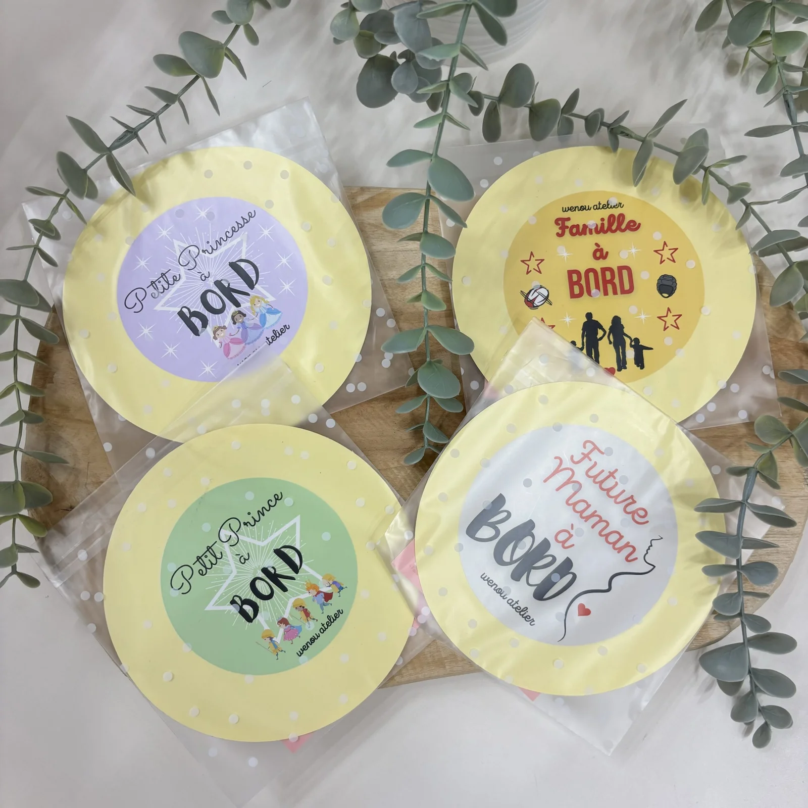 | Stickers | Famille à bord, Future maman à bord, Petit prince à bord, Petite princesse à bord |