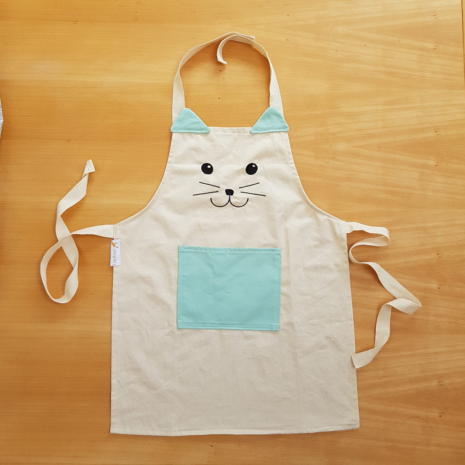 Ce tablier de cuisine pour enfant Chat est en 100% coton. Je l’ai sélectionné pour son caractère fairtrade. Je le personnalise ensuite de manière artisanale.