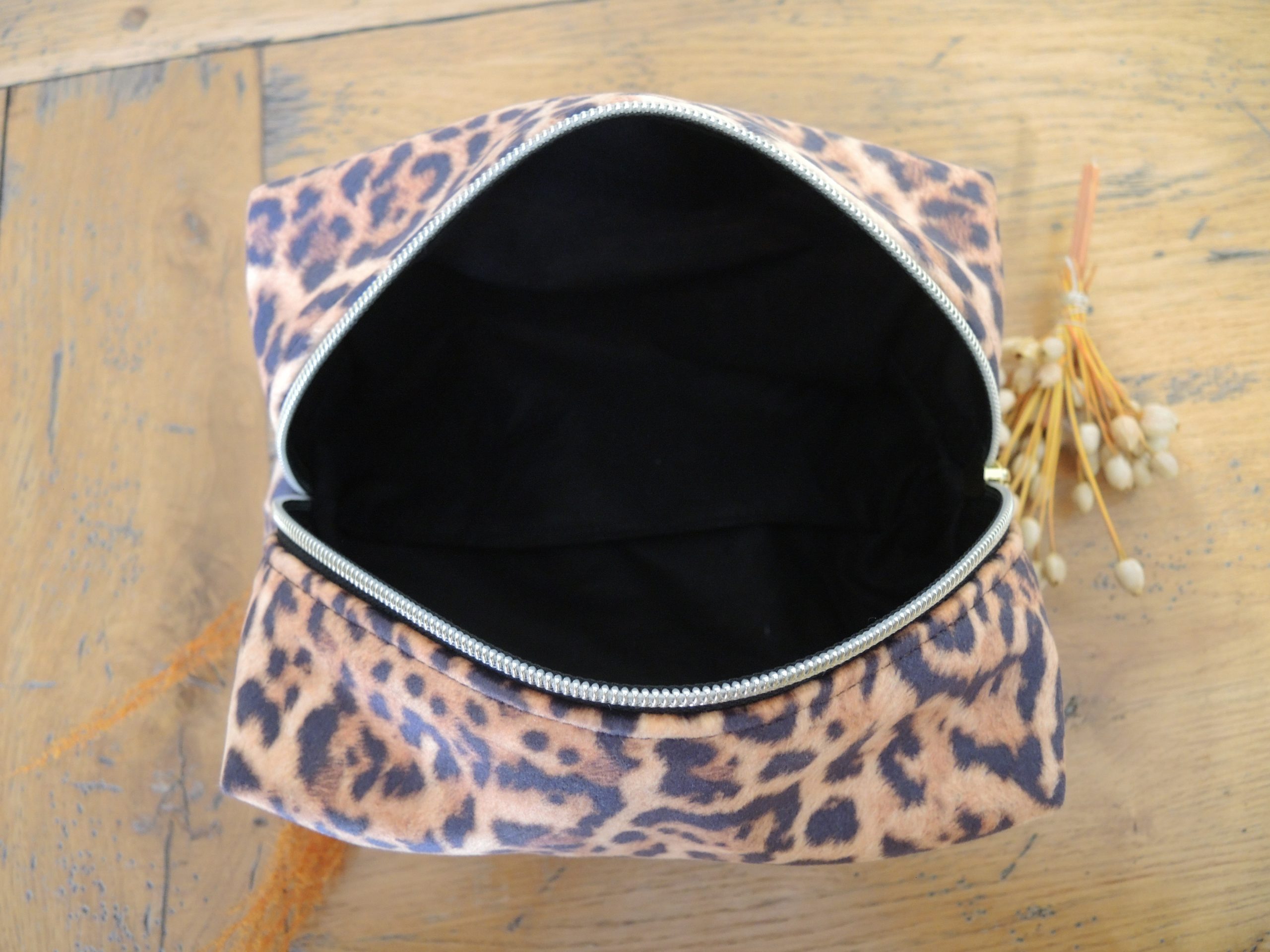 TROUSSE LEOPARD – TAILLE M Le velours côtelé, un tissu plein de charme qui traverse les temps sans jamais se démoder. Glissez-la très facilement dans votre sac à main, votre sac de voyage ou bien tout simplement dans votre salle de bain. Elle vous permettra de ranger tous vos petits accessoires de toilette, cosmétiques, lingettes lavables, et autres produits. De toute évidence, une trousse pour tout votre bazar dont on a tous besoin ! Emportez-la partout avec vous… Lavage en machine à 30°C ou 40°C ou lavage à la main