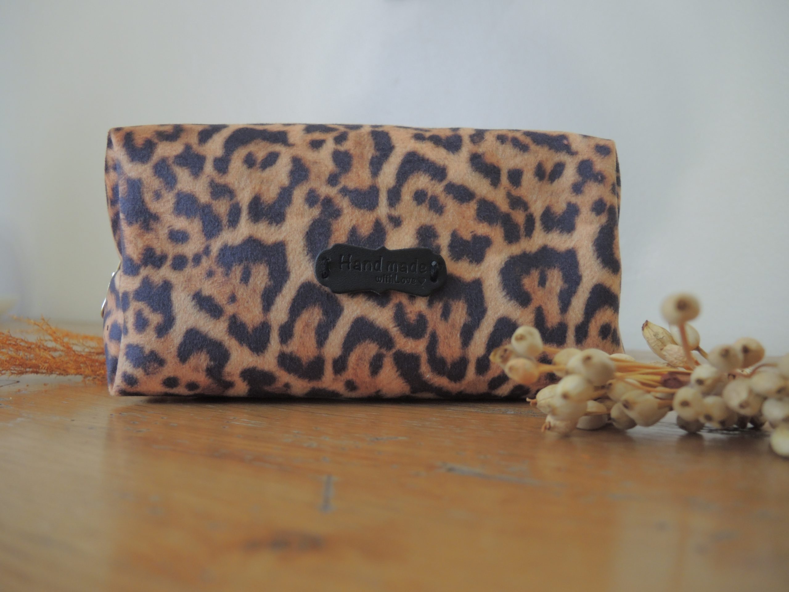 TROUSSE LEOPARD – TAILLE S Le tissu velours lisse imprimé léopard, un tissu plein de charme à la mode qui fait toujours son petit effet ! Glissez-la très facilement dans votre sac à main, votre sac de voyage ou bien tout simplement dans votre salle de bain. Elle vous permettra de ranger tous vos petits accessoires de toilette, cosmétiques, lingettes lavables, et autres produits. De toute évidence, une trousse pour tout votre bazar dont on a tous besoin ! Emportez-la partout avec vous… Lavage en machine à 30°C ou 40°C ou lavage à la main