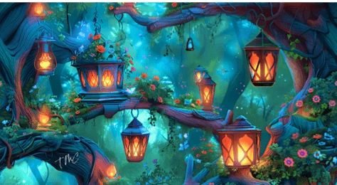 Une face avant illustrée du petit Lanterne dans un décor forestier tout doux