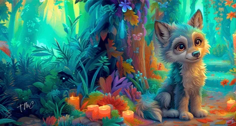 Une face avant illustrée du petit Loup dans un décor forestier tout doux