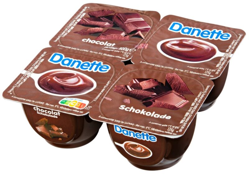 LAIT demi écrémé (77,6%), sucre, crème (LAIT), chocolat (2,2%) (sucre, pâte de cacao, cacao maigre, émulsifiant (lécithine de SOJA), arôme), cacao maigre, épaississants (E1442, E407), perméat de petit LAIT (lactosérum) en poudre, amidon.