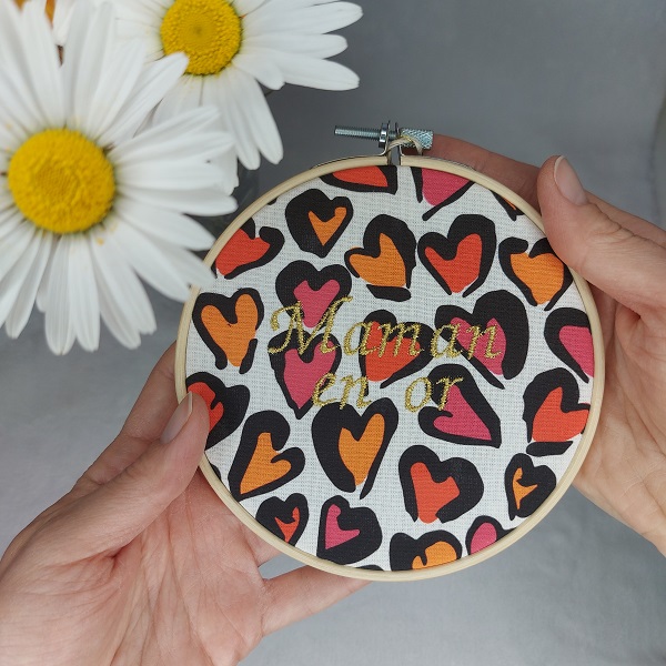 Tambourin brodé idéal comme cadeau de fête des mères.