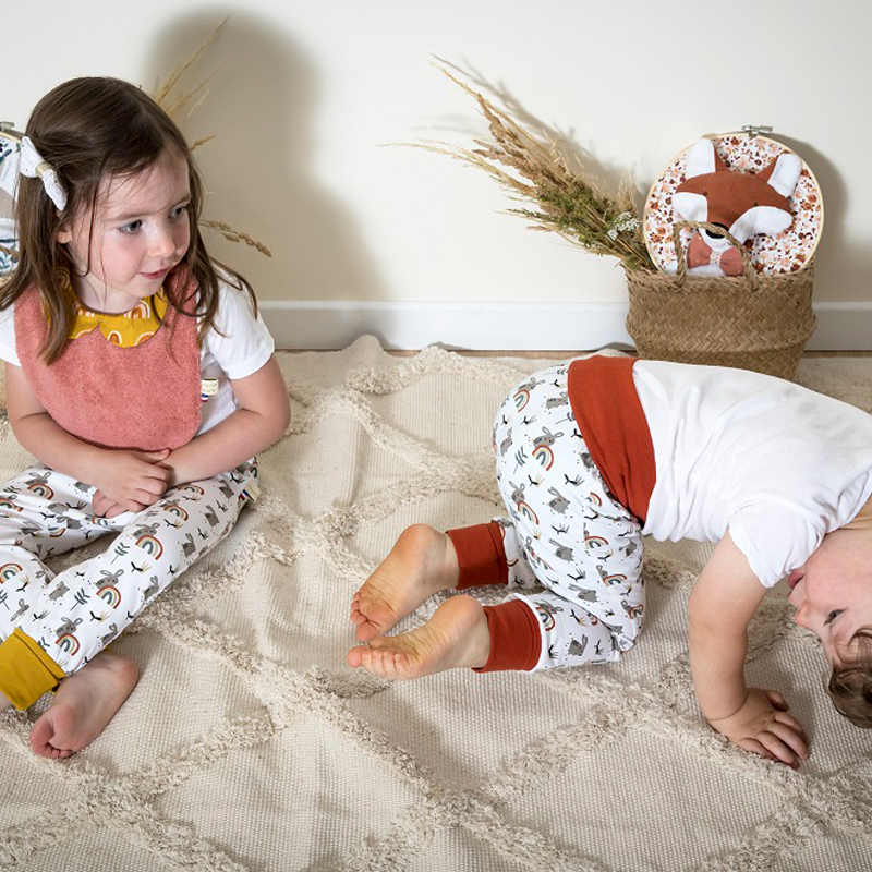 La coupe du pantalon est à la fois confortable et stylée. Un gousset à l’entrejambe permet une bonne aisance des mouvements de bébé. Idéal pour la motricité libre.