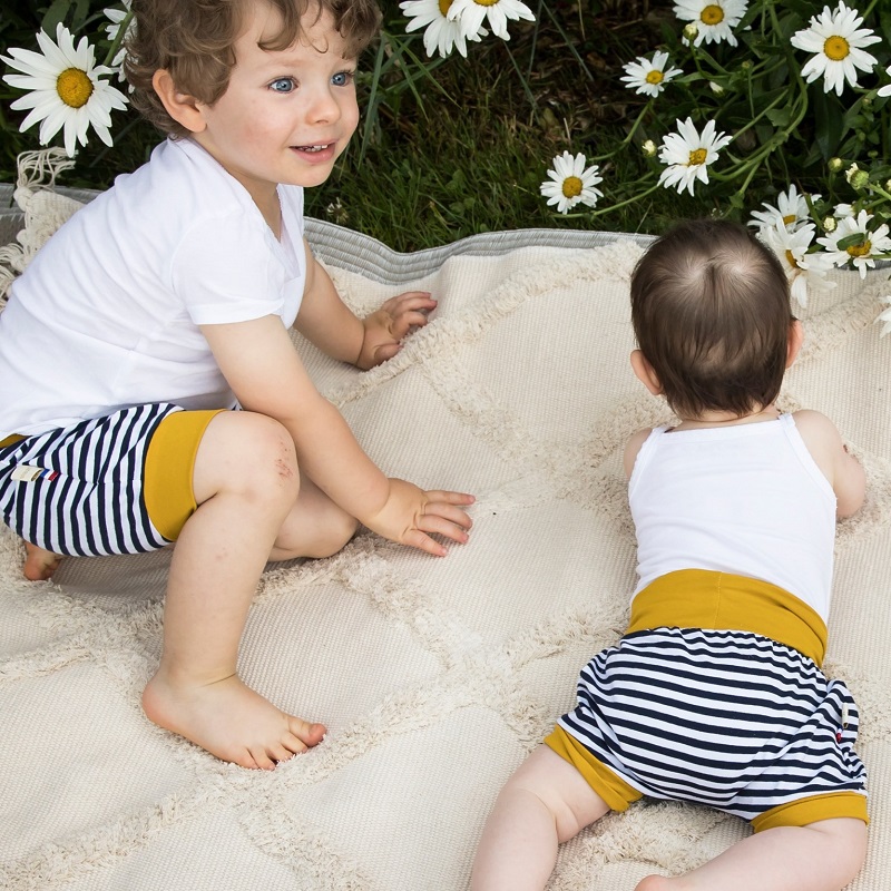 La coupe du short permet une bonne aisance des mouvements de bébé. Idéal pour la motricité libre.